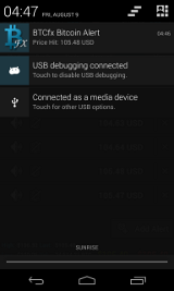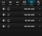 Create as many price alerts as you want and never miss any trade opportunities again. Our servers are monitoring the live exchange rate from bitcoin exchanges and push price alert notifications to your device. Every alert is customizable (silent, vibrate, notification sound) and will appear in your notification bar.